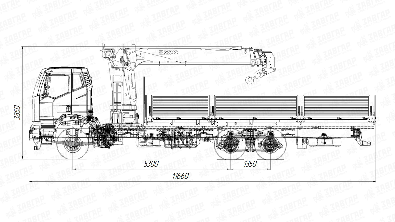 Бортовой FAW CA3250 с краном-манипулятором XCMG SQS 250-5 — это мощный грузовой автомобиль на базе шасси FAW 3250 с колесной формулой 6x4. Оснащен двухместной кабиной с одним спальным местом и дизельным двигателем CA6DM2-39E51 мощностью 390 лошадиных сил, соответствующим стандарту EURO 5. Коробка передач механическая FAST 12JSD180TA. Автомобиль оборудован шинами 315/80 R 22.5 или 12.00 R 20 и топливным баком 400 литров.