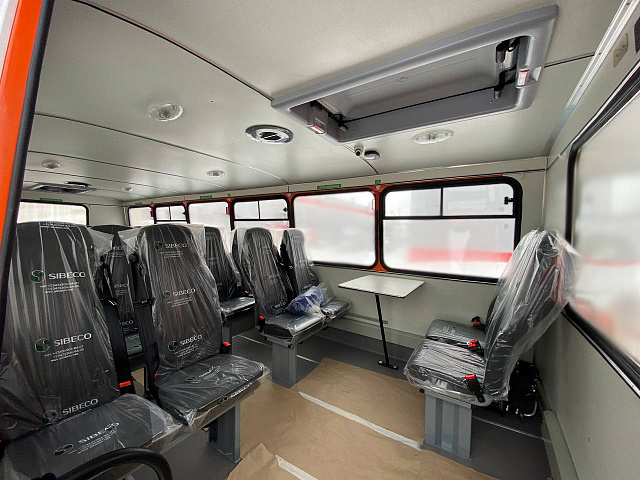 | Комплектация | Сиденья пассажирские, двухместные с ремнями безопасности, Видеоконтроль пассажирского салона, переговорное устройство, сухой фен, калорифер |