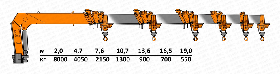 | Грузоподъемность КМУ, кг | 8000 |