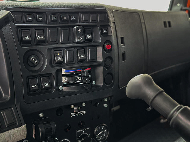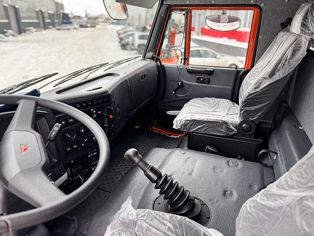 Автомобиль оснащен двухместной кабиной без спального места, укомплектован дизельным двигателем Cummins (КАМАЗ 667.511-300) мощностью 300 лошадиных сил, который соответствует экологическому стандарту Евро 5. Коробка передач механическая, модель 1310TO, обеспечивает надежную передачу мощности. Размер шин — 425/85R21.