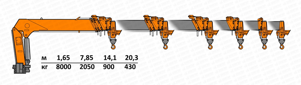 | Вылет стрелы, м | 20.3 |