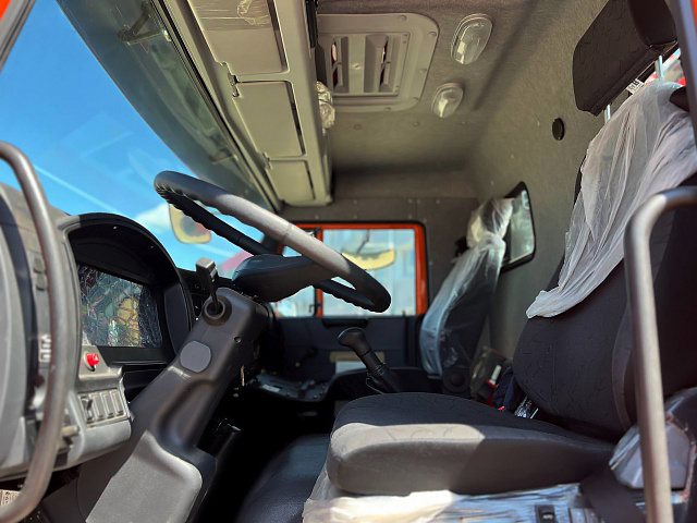Кабина двухместная, без спального места, что обеспечивает удобство управления и рабочее место для водителя и пассажира. Шасси оснащено двигателем Cummins ISB6.7E5 мощностью 300 л.с. (292 л.с. по другим источникам), в зависимости от комплектации, соответствующим экологическому классу Евро-5. Трансмиссия — 9-ступенчатая механическая ZF с плавным переключением передач.