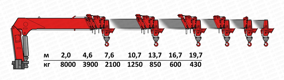 | Вылет стрелы, м | 19,7 |