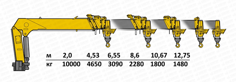 | Грузоподъемность КМУ, кг | 10000 |